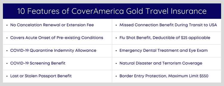 Cover America Gold plan offers comprehensive travel medical insurance for visitors to the USA